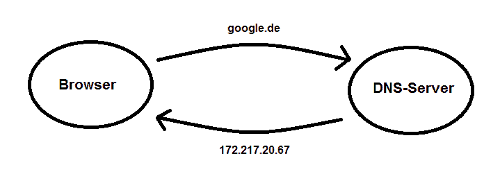 Der erste Schritt, der vom Browser getätigt werden muss, wenn man eine URL eingegeben hat (z.B. google.de), ist, herauszufinden, welcher Web-Server angesprochen werden muss. Dazu muss die zu der Web-Adresse zugeordnete IP-Adresse bestimmt werden. Eine lokale Speicherung dieser Zuordnung für alle Internet-Seiten würde viel zu viel Speicherplatz kosten und es müsste eine ständige Aktualisierung geben.