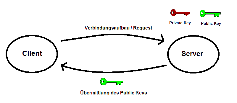 Ein wichtiger Teil des SSL-Verfahrens ist die Verschlüsselung mit einem Public und einem Private Key. Wie schon die Namen sagen, ist der Public Key öffentlich und diesen darf auch jeder kennen, den Private Key muss man hingegen schützen und darf diesen nicht preisgeben. Wenn man eine Nachricht verschicken möchte, benutzt dieser den öffentlichen Schlüssel des Empfängers, um die Nachricht zu verschlüsseln. Eine Entschlüsselung dieser Nachricht ist jetzt nur noch mit dem Private Key des Empfängers möglich.